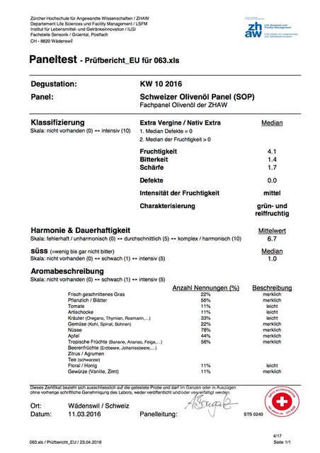 Am 11. Juni 2009 haben wir die Sensoriklizenz-Olivenöl an der Zürcher Hochschule für Angewandte Wissenschaften (ZHAW) erfolgreich bestanden. Mit dem Erwerb dieser Lizenz haben wir die Kompetenz das Olivenäl professionell zu beschreiben und zu beurteilen. Lizenz Leila downloaden / Lizenz Pietro downloaden.